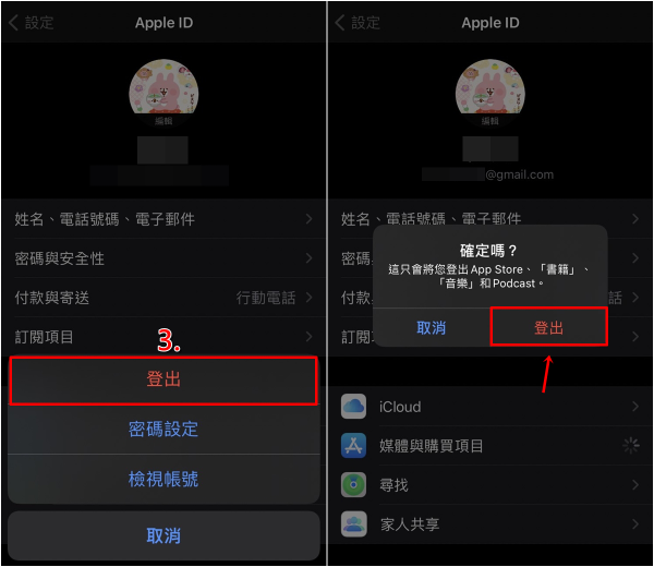 2)选择“登出”并再次确认,点击“登出”。