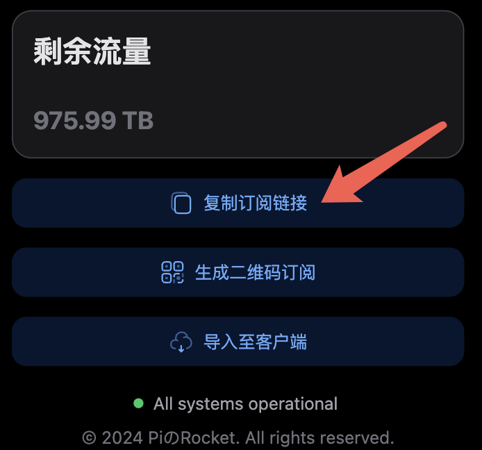 打开官网个人中心,往下翻,找到复制订阅链接。