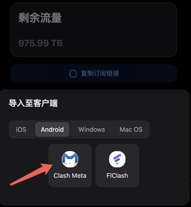 打开官网个人中心,找到Meta订阅图标,点击导入猫咪.