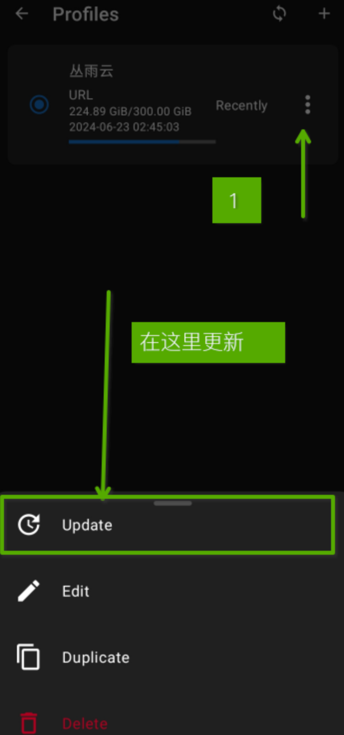 点击右边的三个点,在弹出的菜单中选择「更新订阅」。